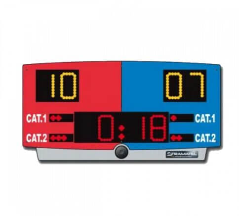 L’Afficheur Karaté K-TOP de STRAMATEL est un tableau d’affichage électronique portable, spécialement conçu pour les compétitions de karaté. Compact et léger, il mesure 730 x 370 x 110 mm et pèse seulement 5,5 kg, facilitant ainsi son transport et son installation. Son affichage LED CMS haute luminosité assure une lisibilité jusqu’à 35 mètres, avec un angle de lecture de 160°, garantissant une visibilité optimale pour les spectateurs et les arbitres. Fonctionnant sur secteur (230 V) ou sur batterie (13,6 VDC), l’Afficheur Karaté K-TOP offre une flexibilité d’utilisation adaptée à divers environnements. Le pupitre de commande intégré, repliable à l’arrière de l’appareil, est équipé d’un écran LCD rétroéclairé, offrant une interface utilisateur ergonomique et intuitive.