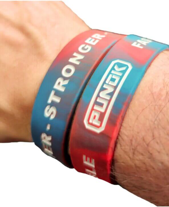 Un bracelet pour tous les poignets ! Sur le devant du bracelet, la gravure “Faster – Stronger – Unbeatable” (plus rapide – plus fort – imbattable) est profondément embossée et remplie de couleur (blanche), ce qui donne à votre style un caractère puissant.