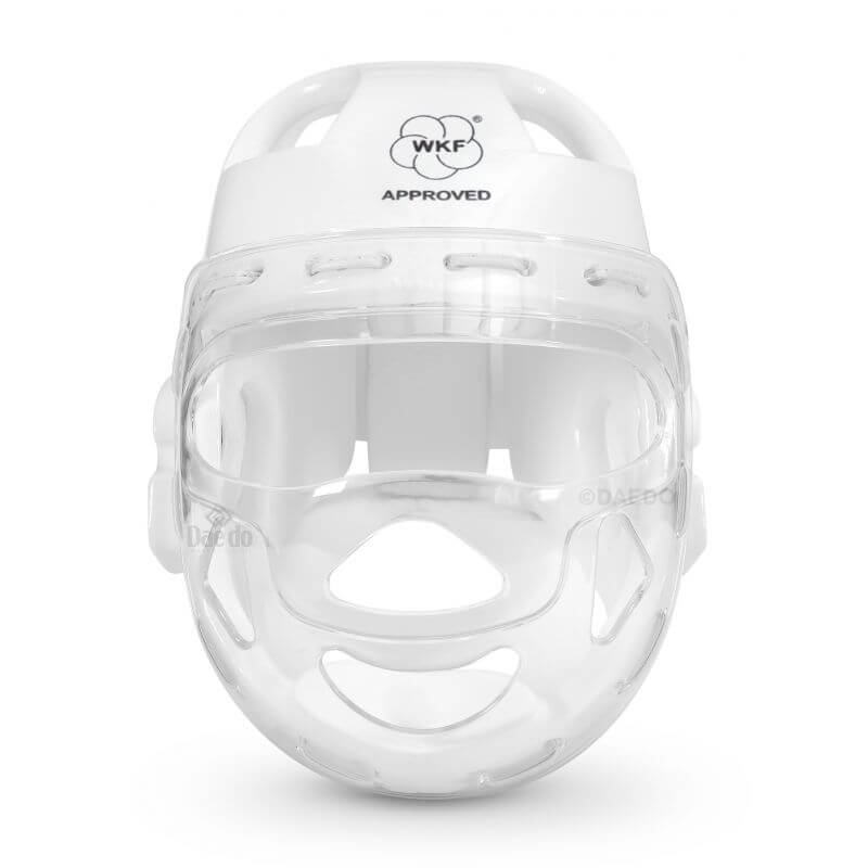 Casque de protection blanc U14 Daedo – WKF – Protection de la tête avec système de fermeture pratique.