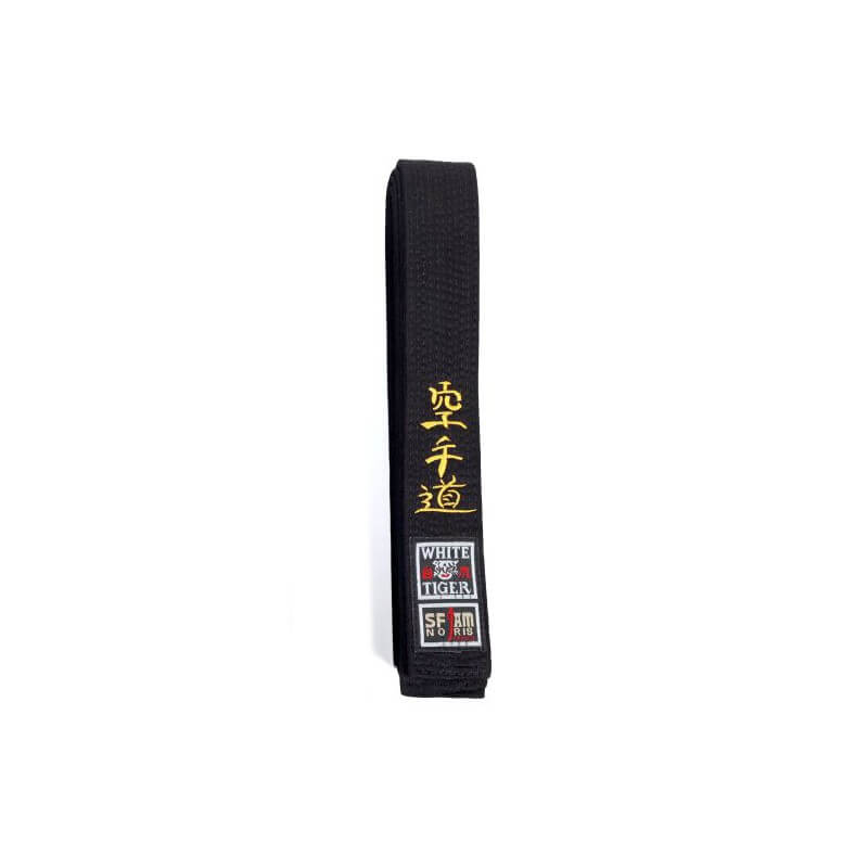 La Ceinture Noire Brodée Karaté-Do de NORIS, en coton. Ceinture résistante, brodée “Karaté-Do” en japonais en couleur doré.