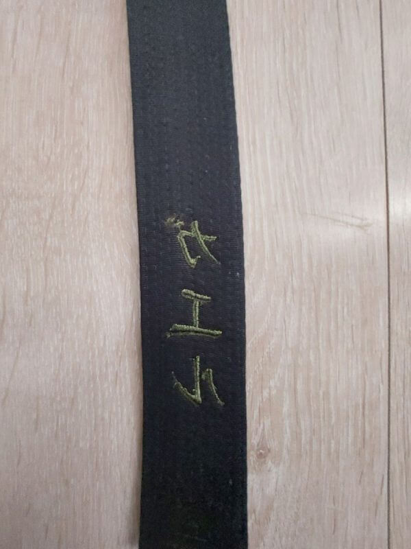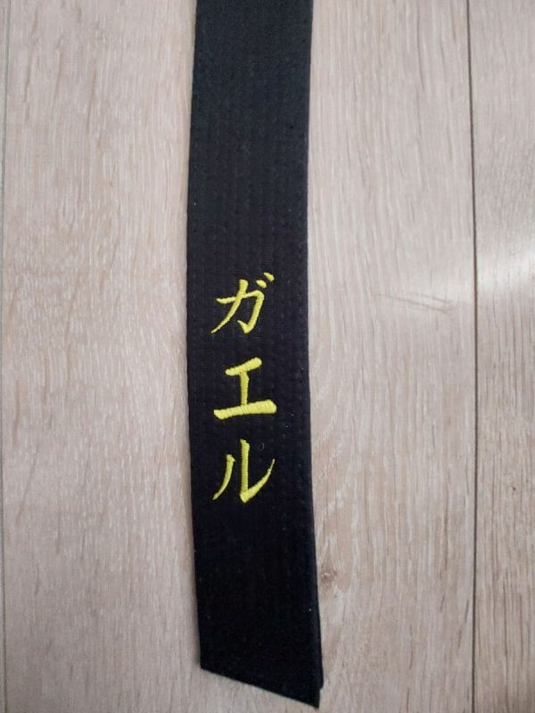 Ceinture de très bonne qualité. Je suis très satisfait des broderies. Il faut prévoir un bon mois pour la réalisation de ces dernières. Je joins des photos devant et derrière des broderies.
