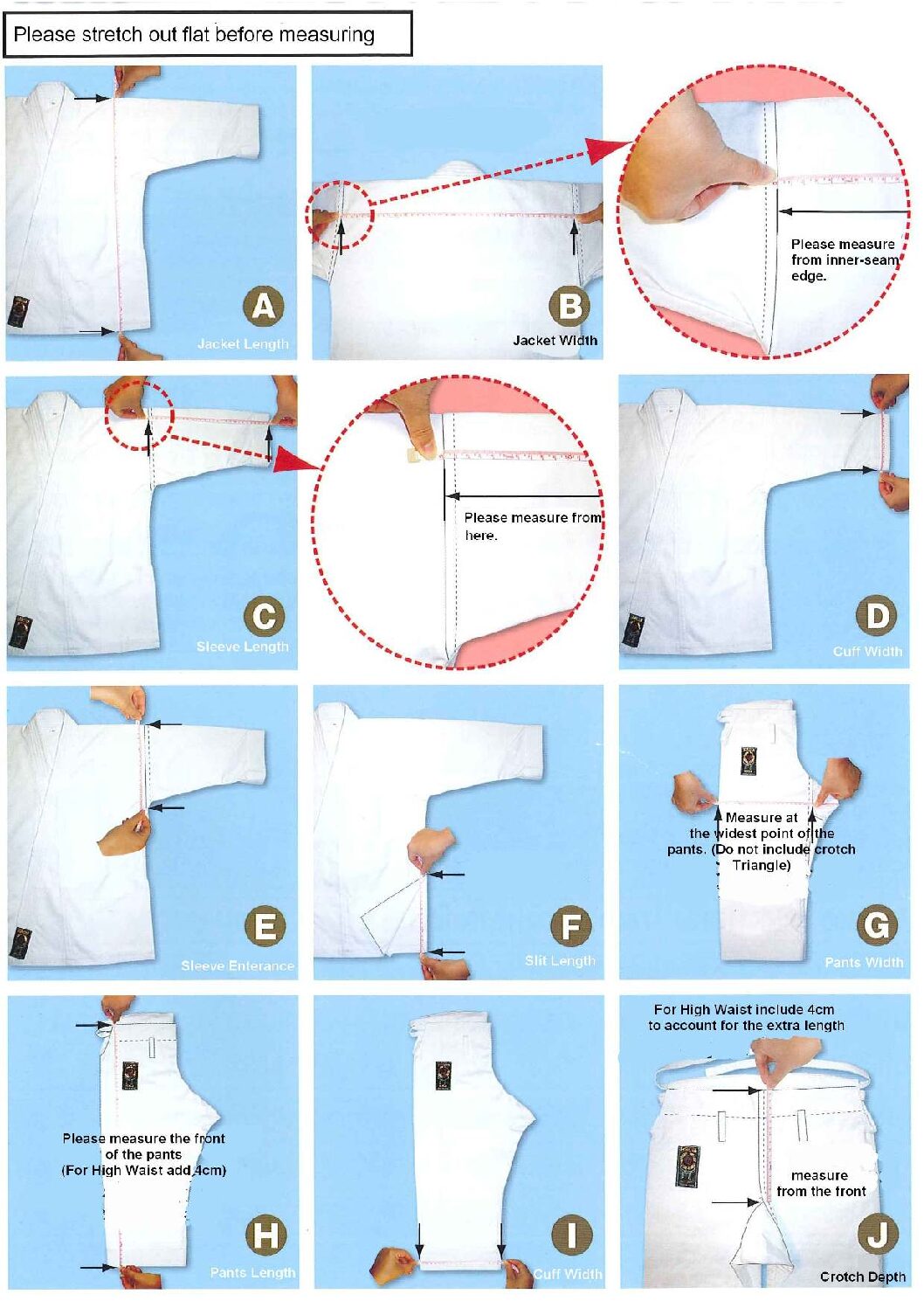 Il est conseillé de choisir votre kimono d’une longueur d’environ 5 centimètres supérieure à celle de votre taille.
