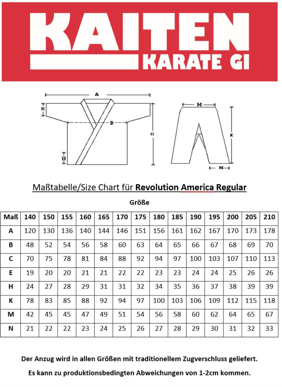 Le Kimono karaté Kaiten REVOLUTION America Regular est conçu avec un tissu 100% coton et a une coupe régulier avec une fermeture cordon. Kimono idéal pour entrainement mais également pour une compétition.