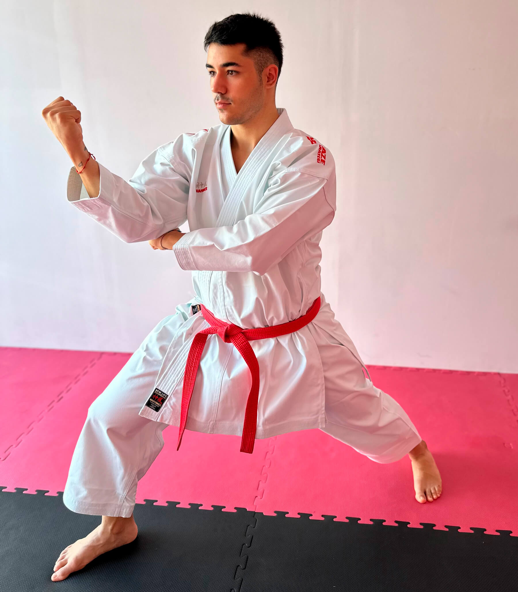 Le modèle de Karategi Kamikaze New Life Excellence Rouge ou Bleu (aka/ao) est brodé sur les deux épaules en Rouge ou en Bleu suivant votre choix.