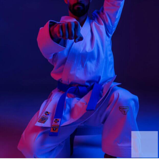 - Dos de la veste légèrement allongé – Optimise l’esthétique et améliore la dynamique des mouvements Kata