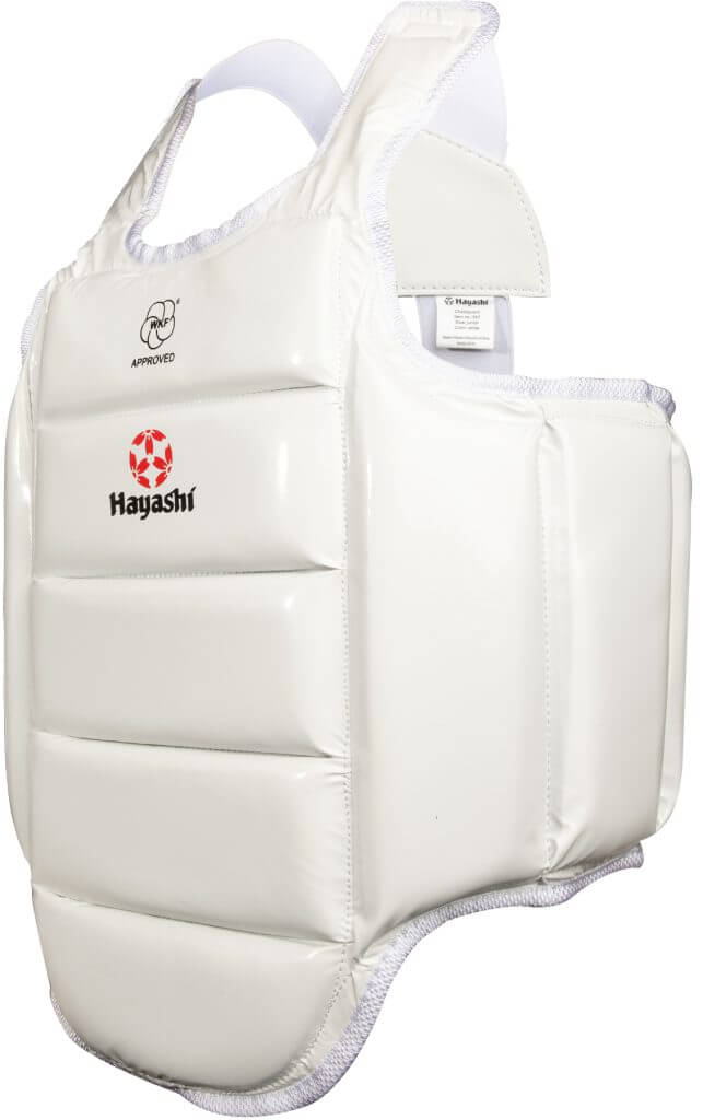 Le plastron Hayashi pour enfants, homologué WKF U14, offre une protection légère et efficace, avec un ajustement sécurisé et une liberté de mouvement idéale pour les jeunes karatékas.