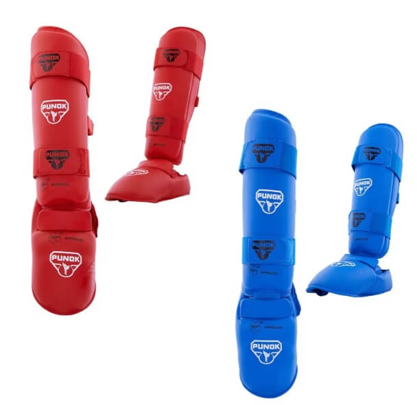 Protège tibia et pieds de Karate Punok – bleu ou rouge – WKF