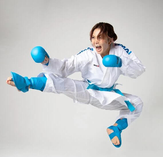 - Coloris disponibles : rouge (aka) et bleu (ao), pour répondre aux exigences en compétition WKF.