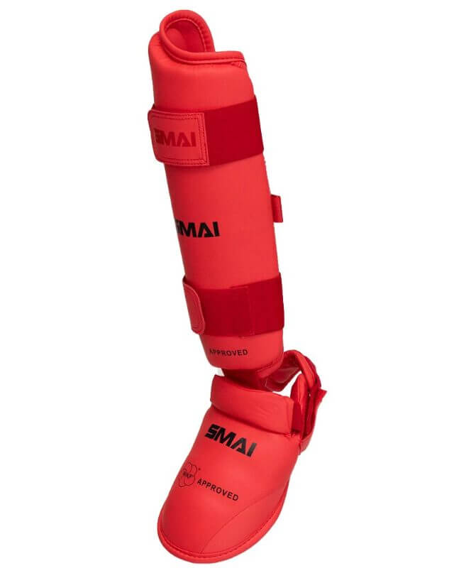 Conçus selon les spécifications rigoureuses de la Fédération Mondiale de Karaté (WKF), les protège tibia et pieds de Karate SMAI offrent une protection complète pour les compétiteurs exigeants. Fabriqués avec de la mousse injectée légère, ces équipements absorbent efficacement les chocs, assurant ainsi la sécurité lors des entraînements et des compétitions. Leur conception couvre entièrement le tibia, le pied, les orteils et inclut une protection supplémentaire au niveau du talon, garantissant une défense optimale contre les impacts.