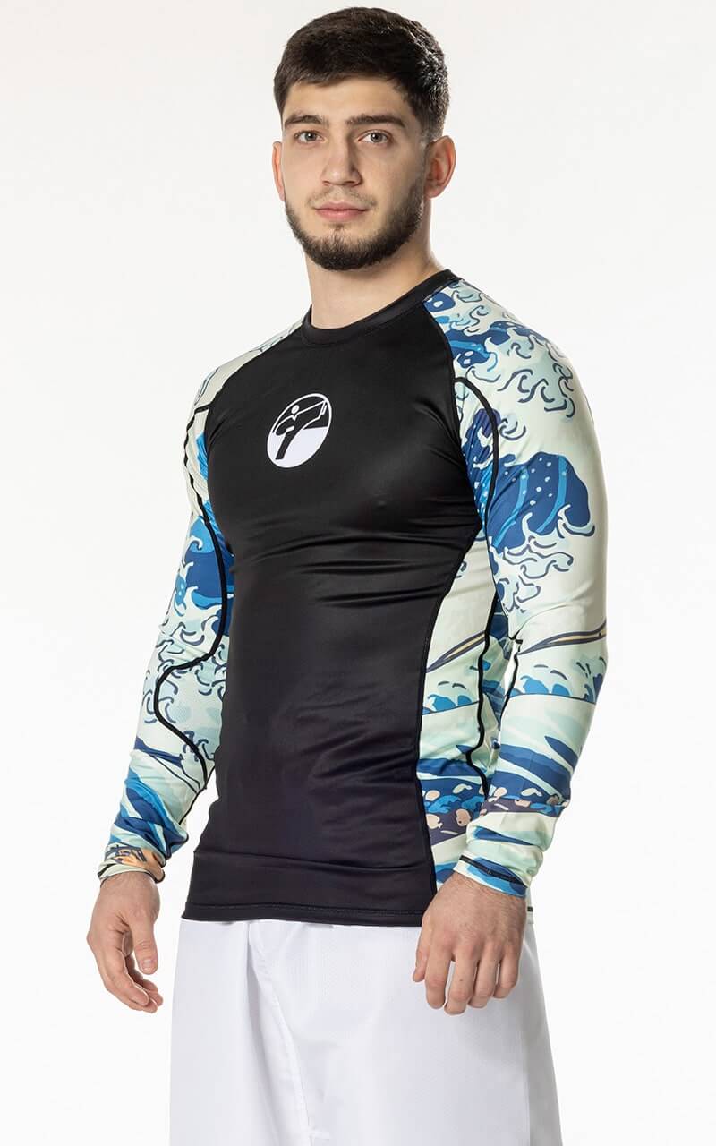 Le design ne fait aucun compromis : le motif japonais traditionnel est imprimé par sublimation directement dans le tissu, garantissant une excellente tenue des couleurs même après de multiples lavages. De plus, grâce à sa matière séchage-rapide et très résistante aux déchirures, ce Rashguard Tokaido Tsunami est idéal pour l’entraînement, les compétitions ou les séances intenses de combat ou de grappling.