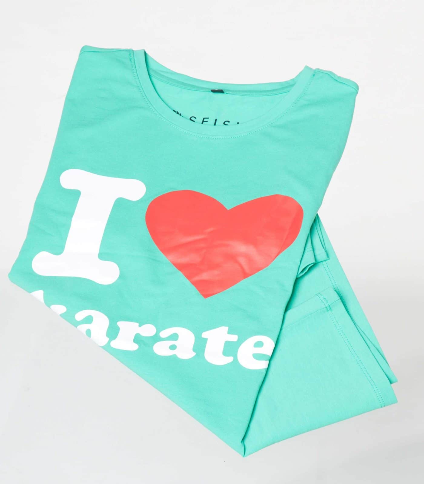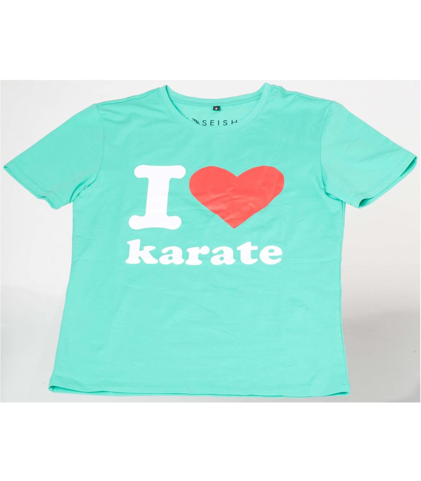T-shirt I Love Karate Vert SEISHIN INTERNATIONAL, fabriqué à partir de coton de la plus haute qualité, avec des tailles parfaites pour les femmes, les filles ou les enfants.