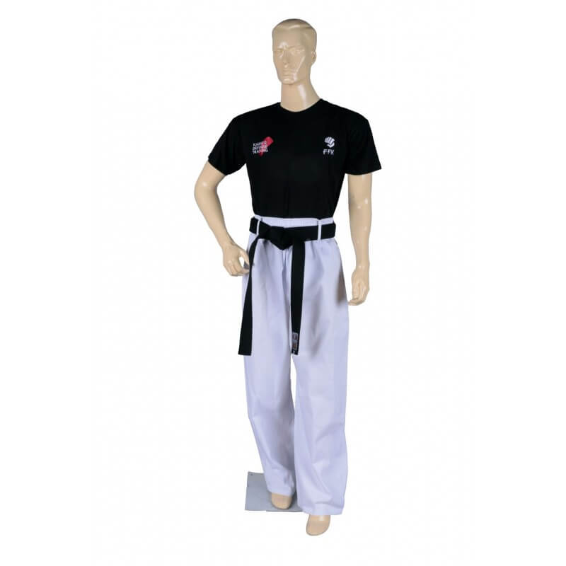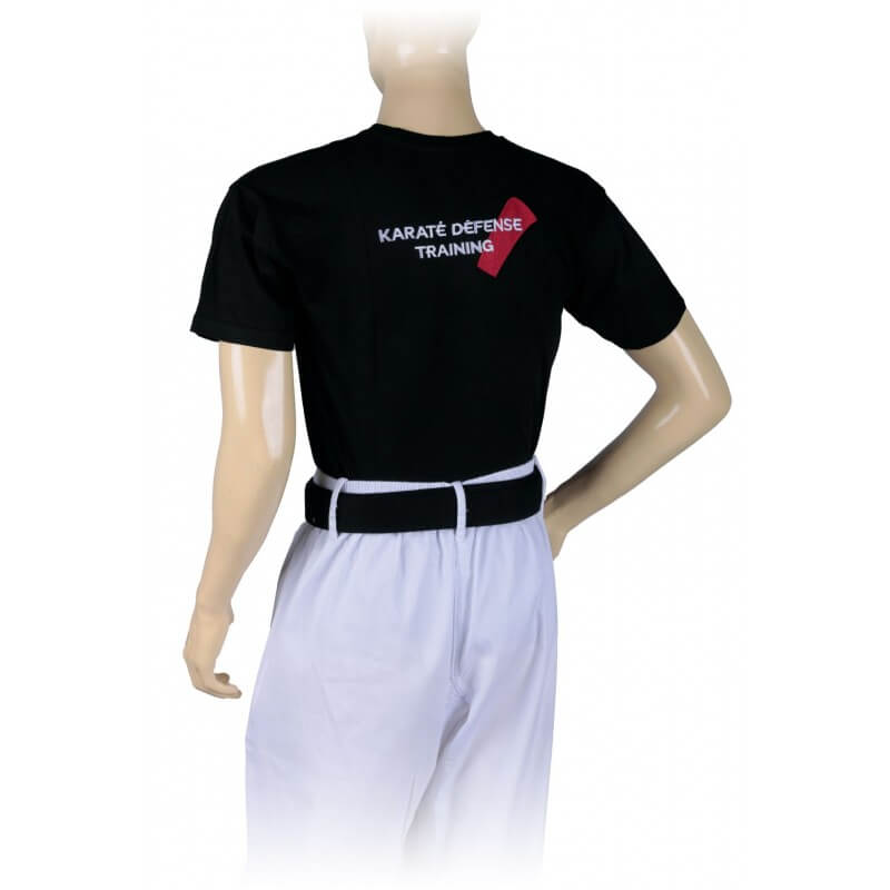 T-shirt Karaté Défense Training avec inscription “Karaté Défense Training” sur le dos et sur le devant.