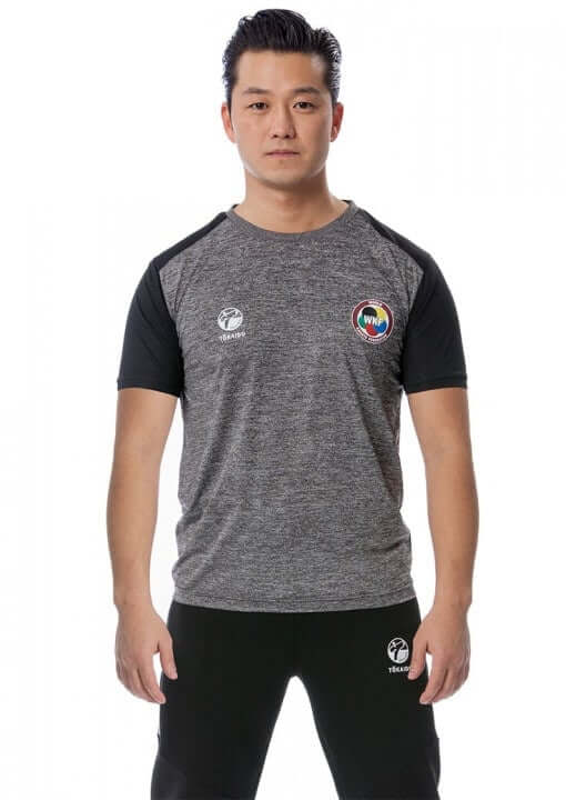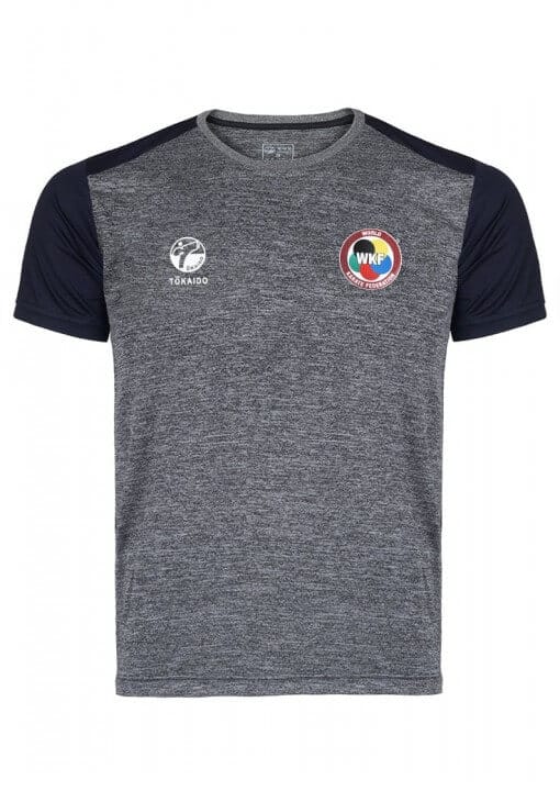 T-shirt Tokaido Team WKF pour homme – gris noir : Idéal pour le sport et l’entraînement – Logo WKF sur la poitrine – 100% Polyester