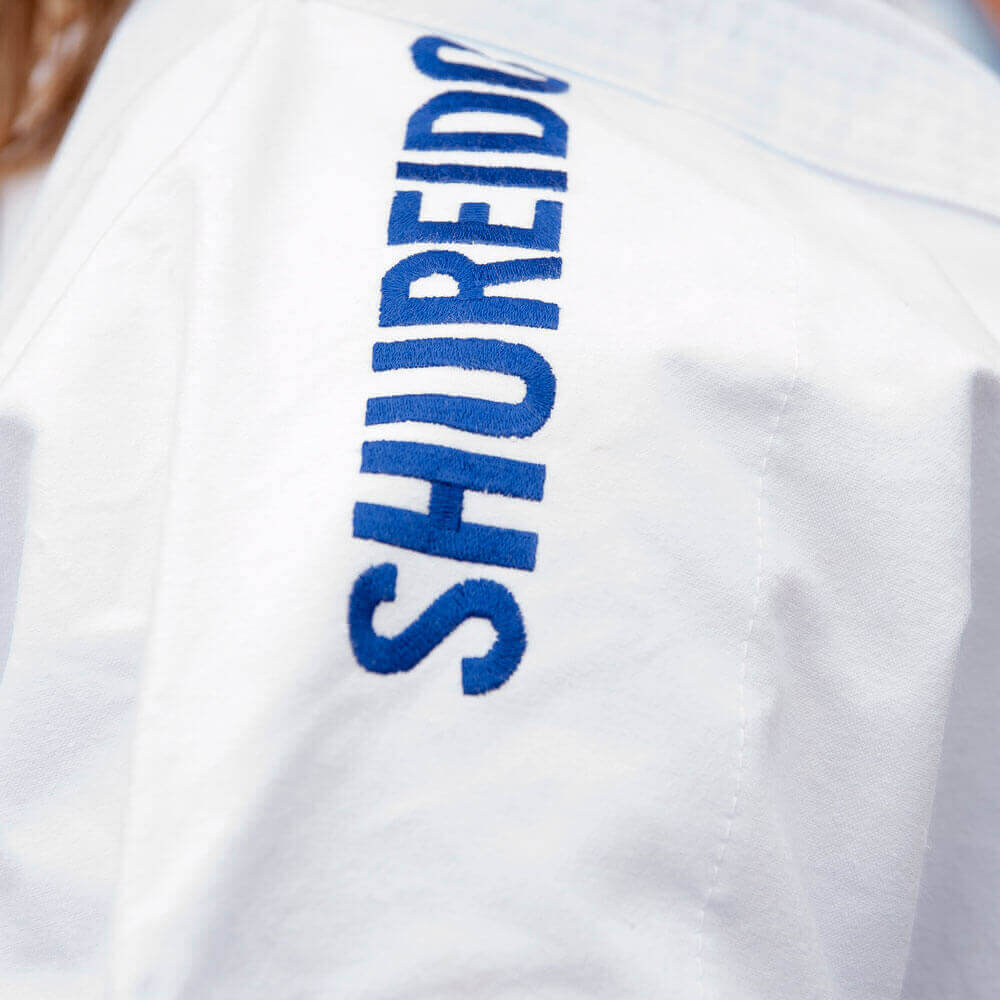- Broderies : Logos Shureido brodés sur la poitrine, la nuque et les épaules (rouges ou bleues), conformes aux exigences WKF